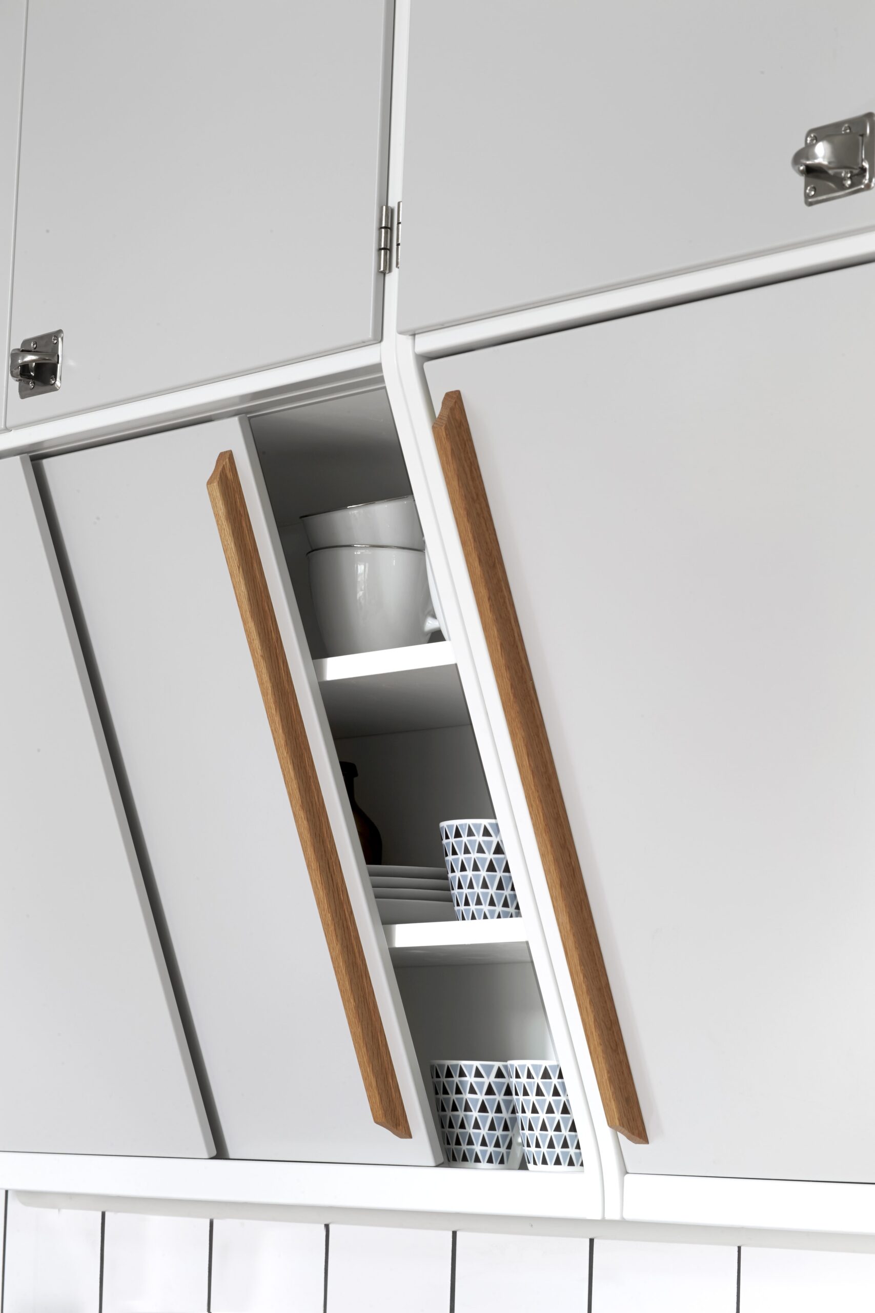 Skjutdörrarna på de klassiska lutande väggskåpen är utrustade med rullhjul. Med synliga pinngångjärn och tidsenliga handtag blir retro looken komplett! Pastell-färg eller kanske något mer sobert? Alla våra MDF-luckor går att få i valfri NCS-kulör.