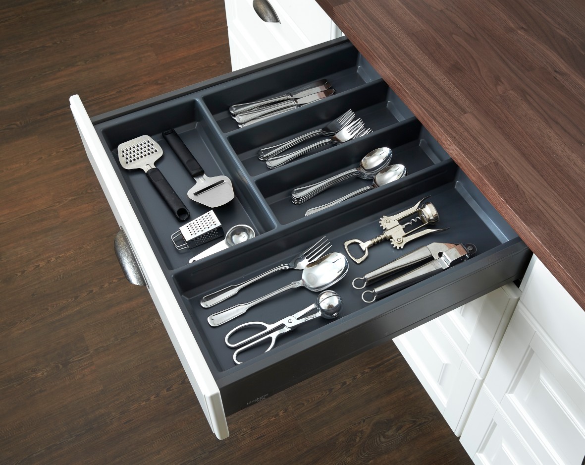 Gör ditt kök mer praktiskt med våra skräddarsydda lådinredningar. Med slitstarka gummimattor i botten skyddar du lådan. Bestickinsatser och kryddställ sparar plats – och varför inte en praktiskt folieskärare placerad i lådan för en enklare vardag?